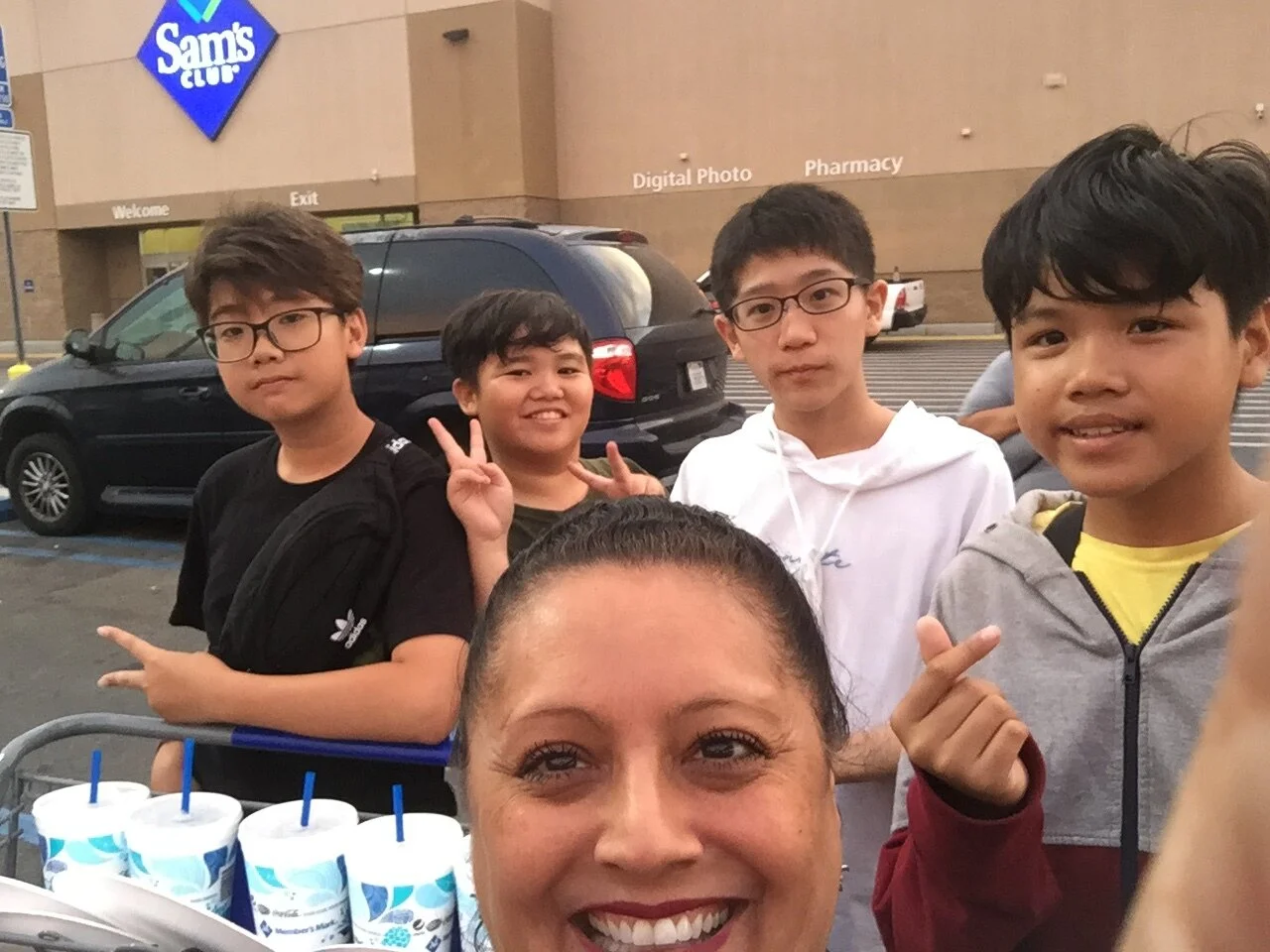 Image Description: Host mother taking her 4 international students grocery shopping at Sam’s Club.